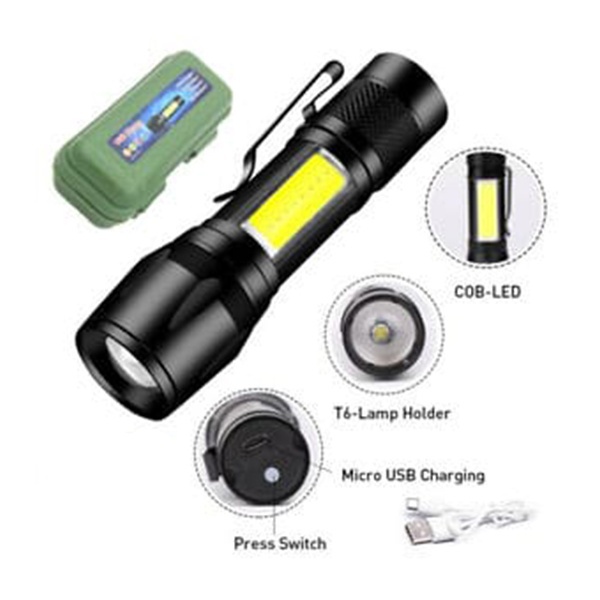 چراغ قوه جیبی زوم دار XPE+COB چراغ بغل پلیسی