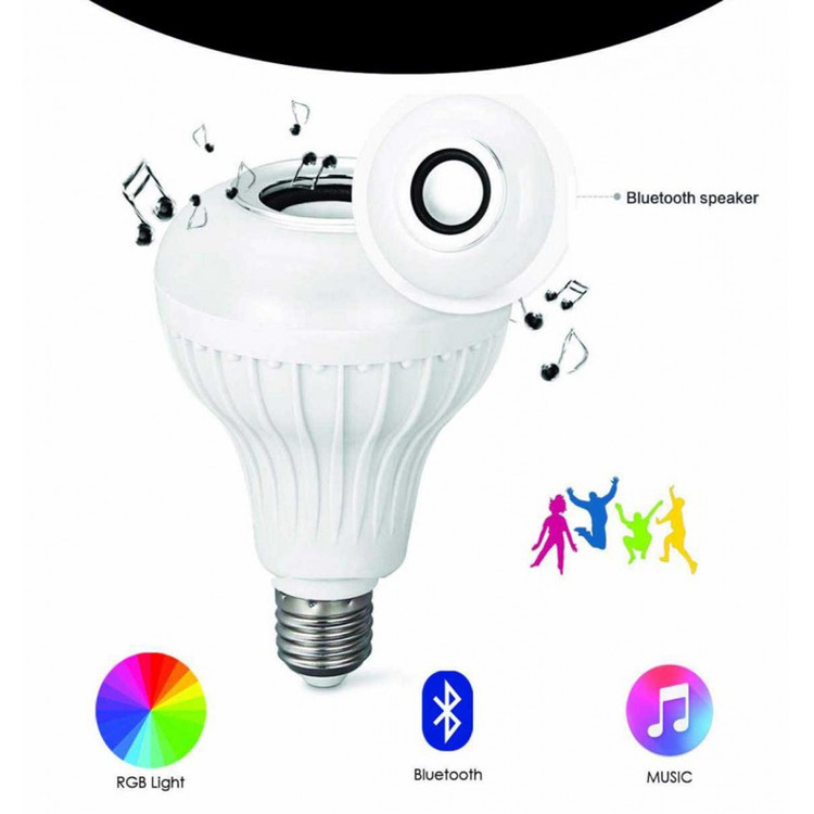 یکی از منحصر به فرد ترین قابلیت های این لامپ هفت رنگ و هوشمند نیز داشتن بلوتوث می باشد که با استفاده از آن می توانید اسپیکر لامپ را به گوشی خود وصل کنید و موزیک های مورد علاقه خود را پخش نمایید. لامپ موزیکال هوشمند همچنین دارای یک ریموت، جهت تنظیم صدای موزیک و تغییر رنگ نور لامپ نیز می باشد.